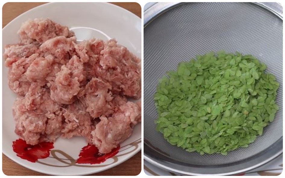 Thịt nạc vai xay nhuyễn, cốm đem rửa sạch để ráo.