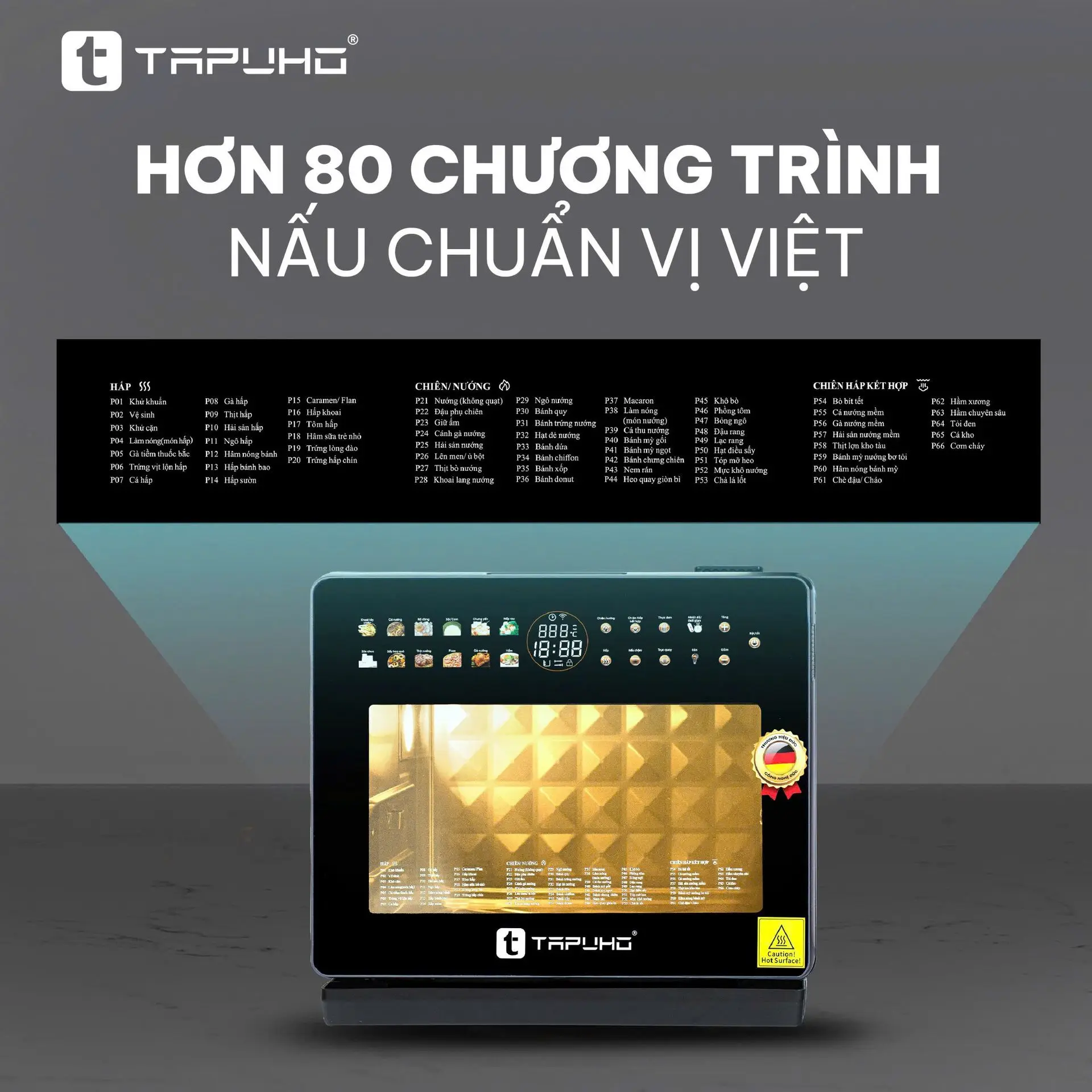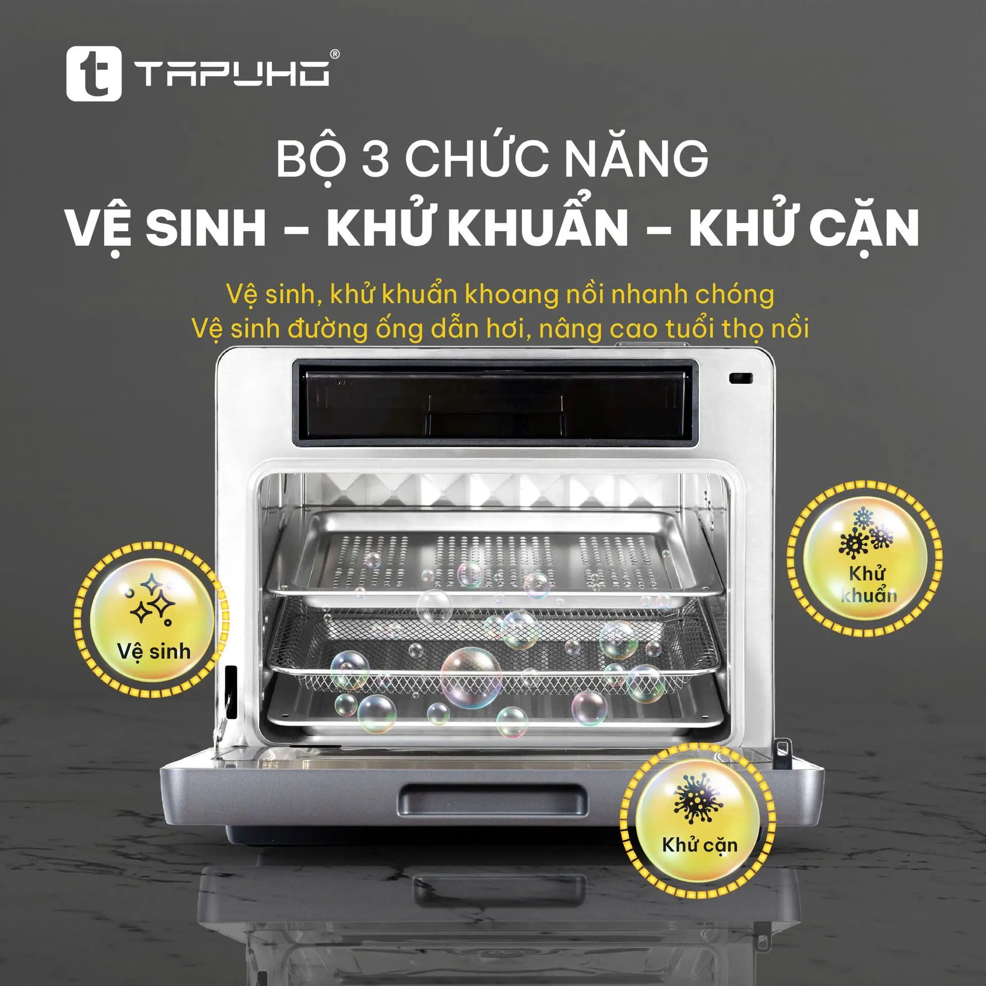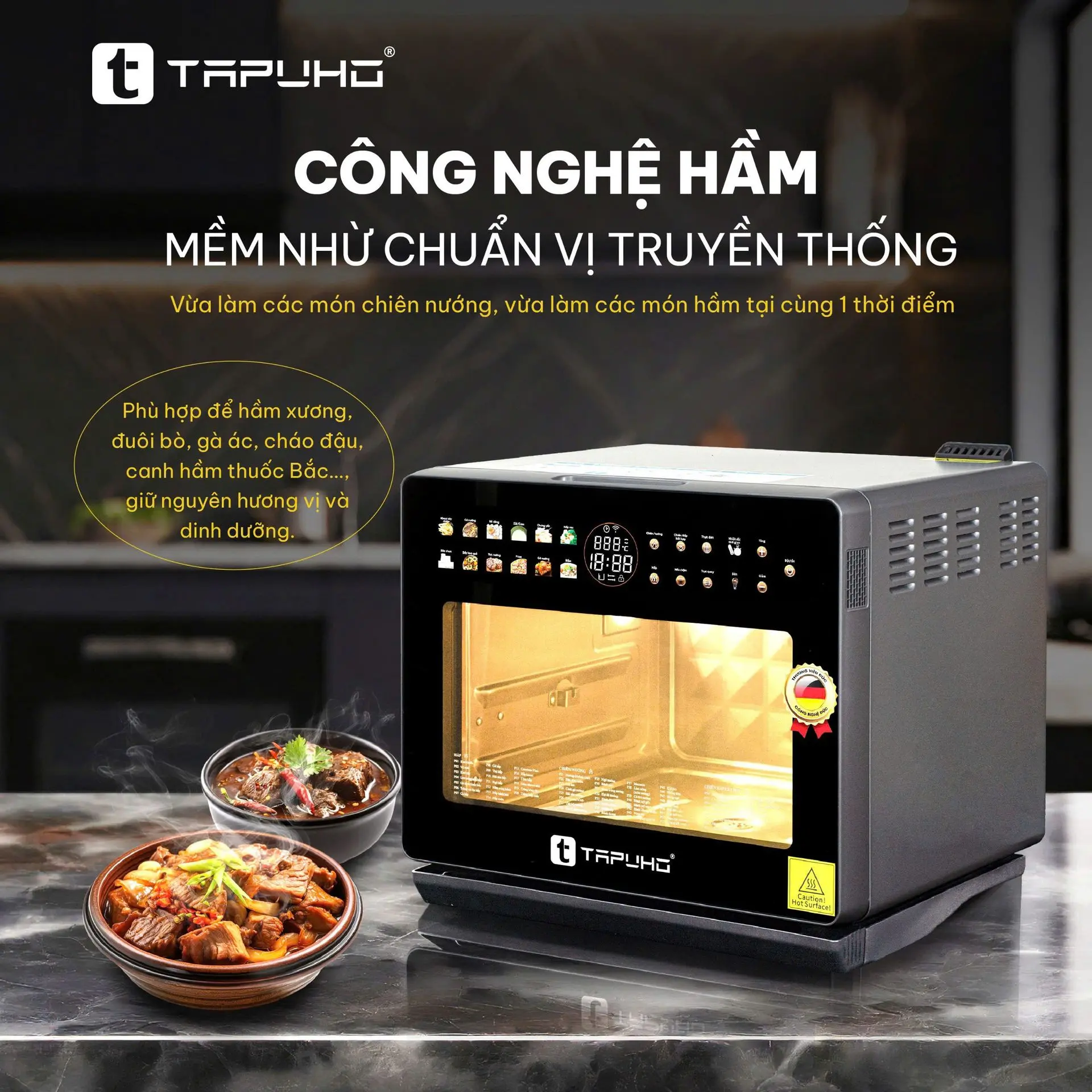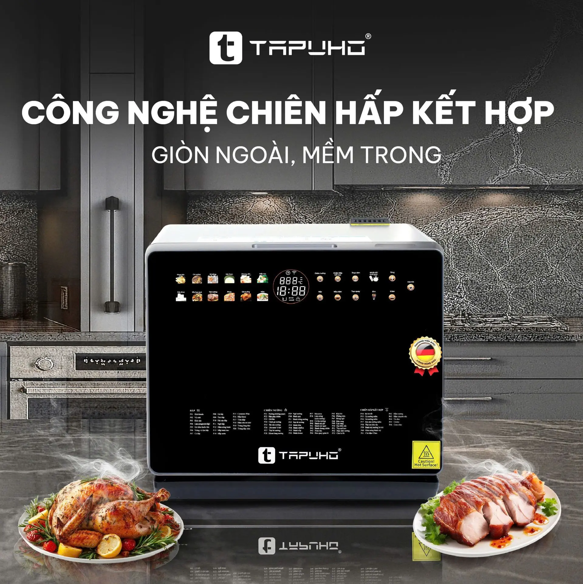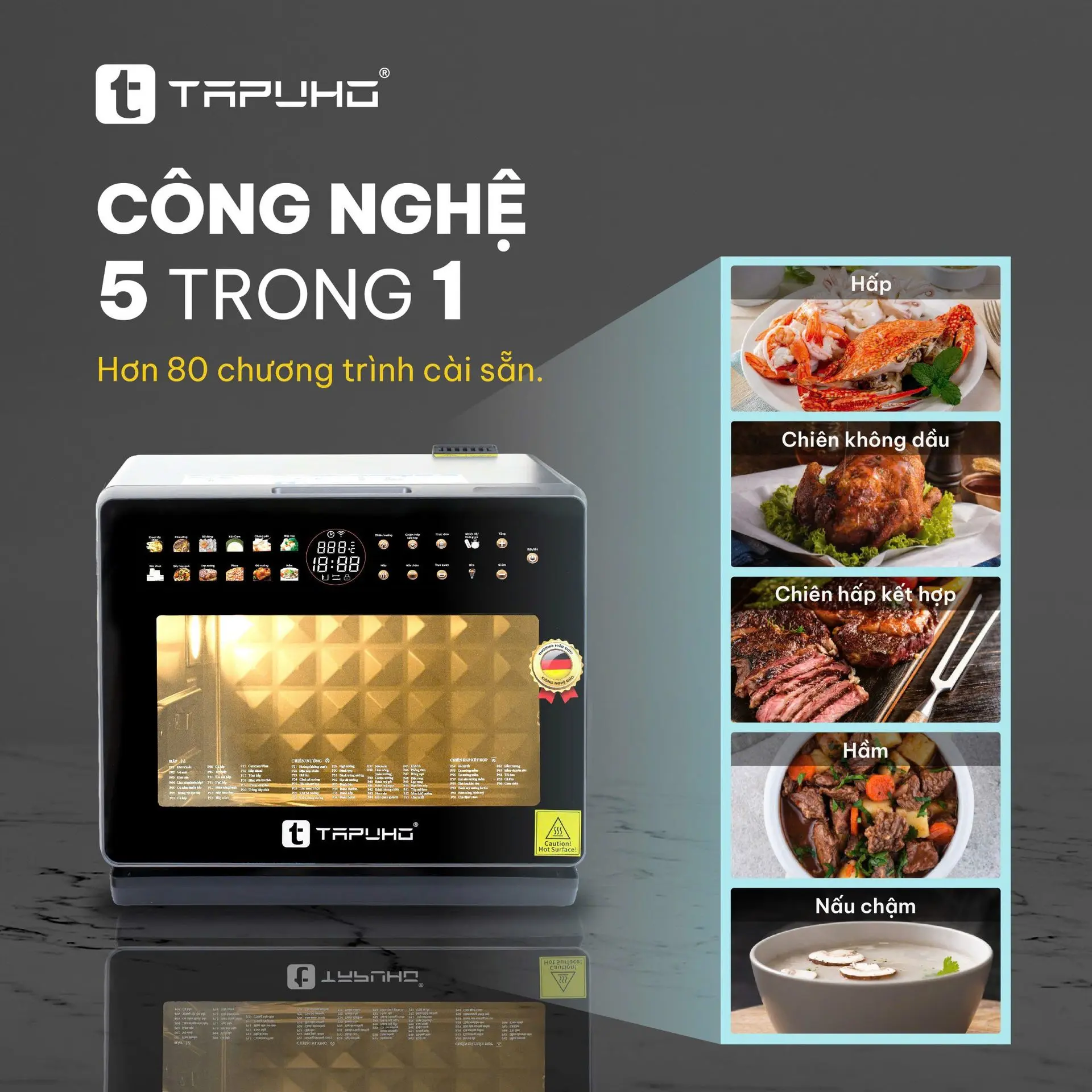 Từ cuối năm 2022, TAPUHO đã ghi dấu ấn mạnh mẽ trên thị trường gia dụng Việt Nam với sự ra đời của Nồi chiên hơi nước TAPUHO TSF16 – sản phẩm tiên phong kết hợp hoàn hảo giữa công nghệ chiên không dầu và hấp hơi nước siêu nhiệt.