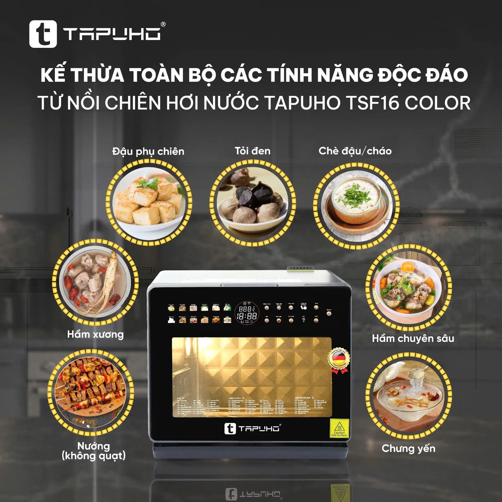 Ở phiên bản đầu tiên TAPUHO TSF16 đã làm bùng nổ thị trường nồi chiên hơi nước tại Việt Nam với chức năng HẦM độc nhất vô nhị, là chức năng có thể làm các món ăn cần ninh nhừ với cơ chế đặc biệt - có thể vừa làm các món nướng vừa làm các món hầm nhừ tại cùng một thời điểm.