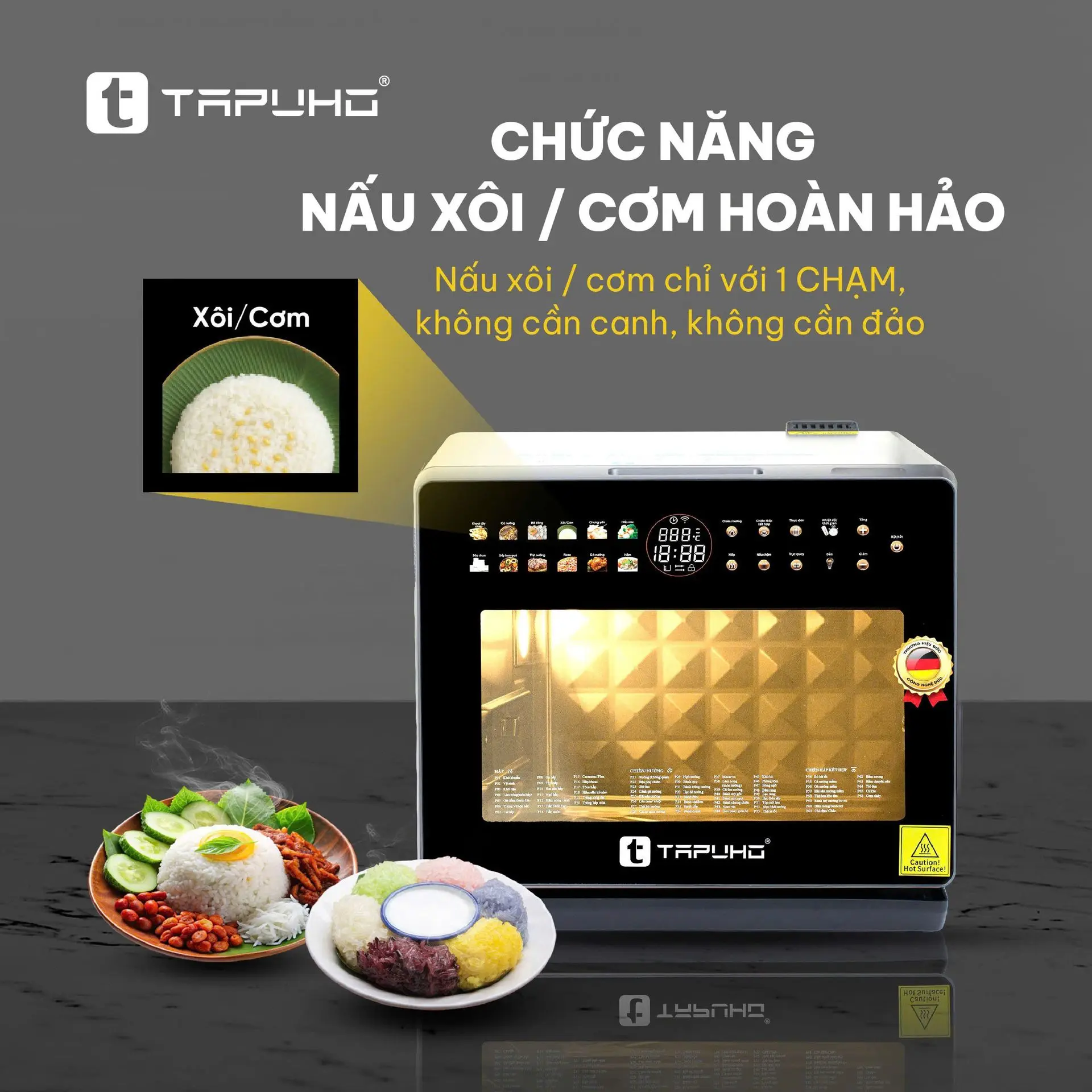 Tính năng nấu cơm / xôi này là kết quả của quá trình nghiên cứu tỉ mỉ từ đội ngũ kỹ sư TAPUHO nhằm điều chỉnh độ ẩm, hơi nước và nhiệt độ sao cho phù hợp nhất với thói quen ẩm thực Việt Nam – nơi mỗi bữa cơm ngon là linh hồn của gia đình.