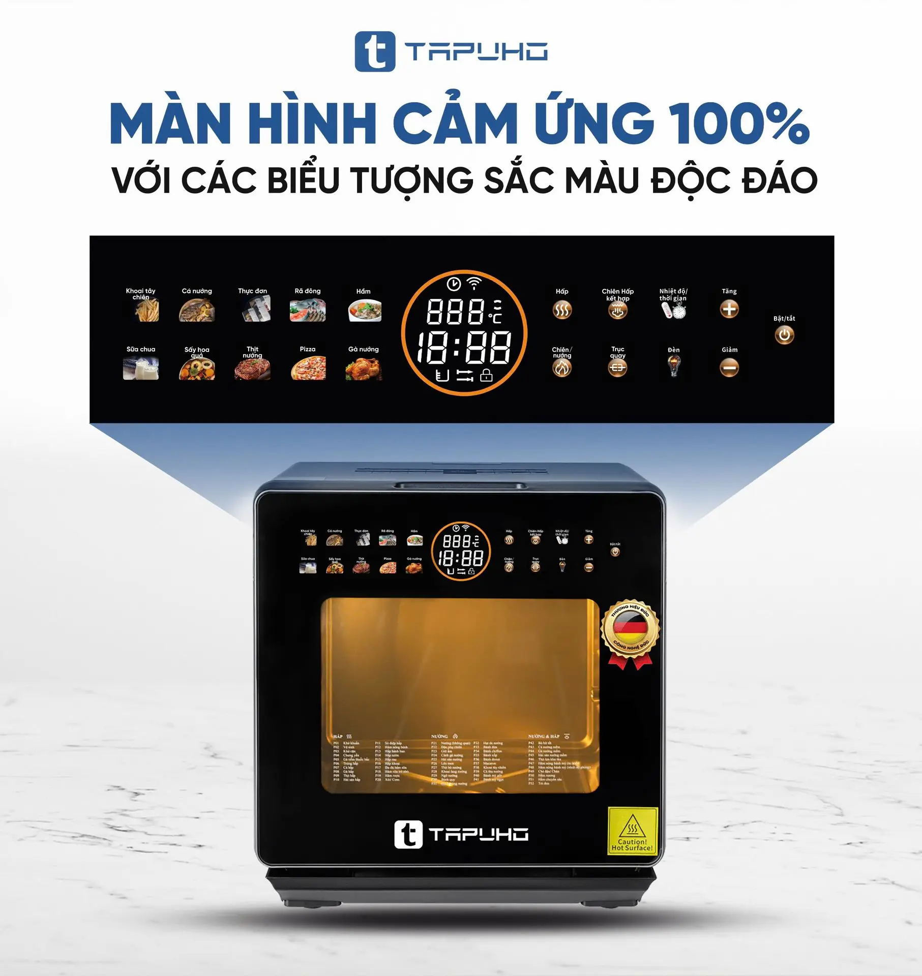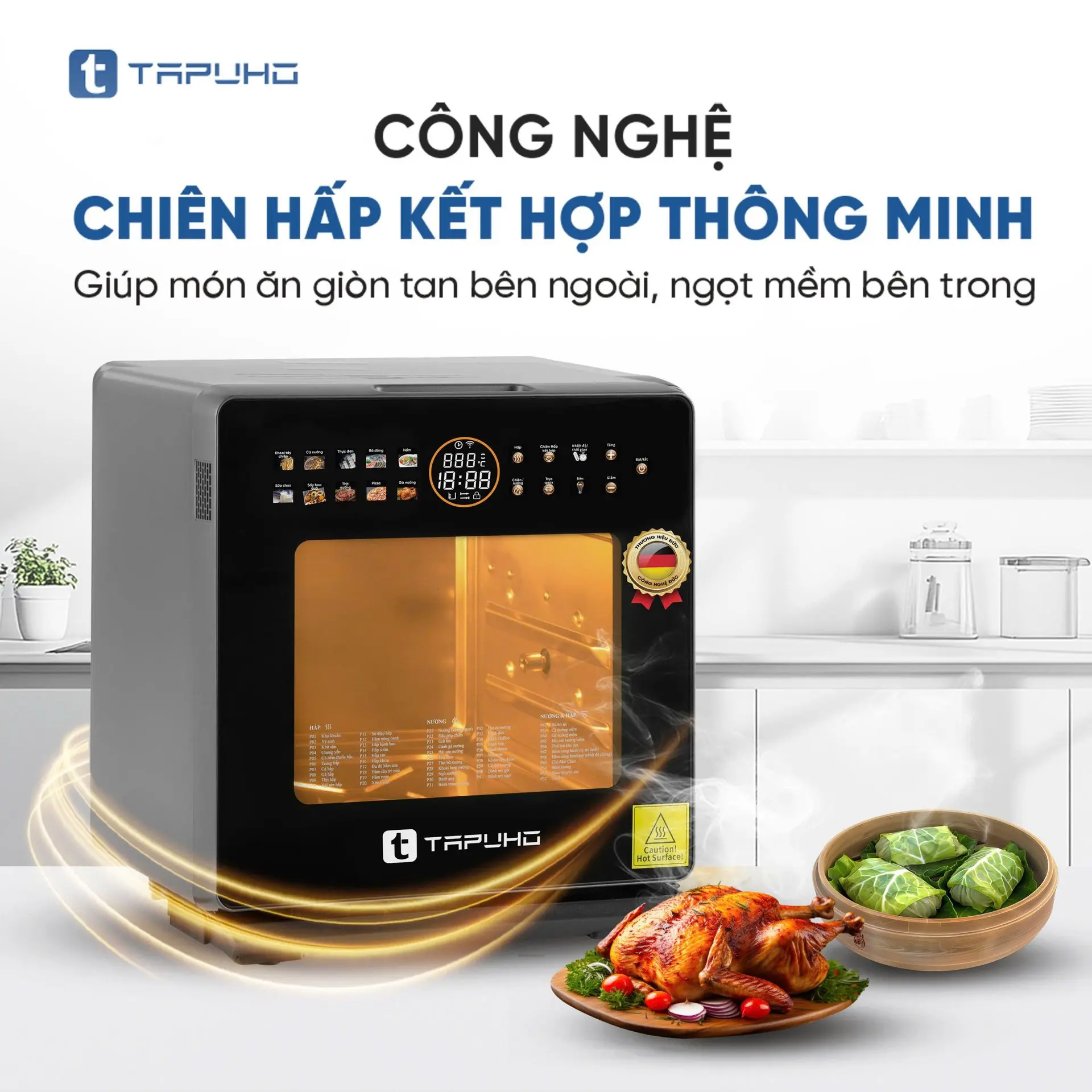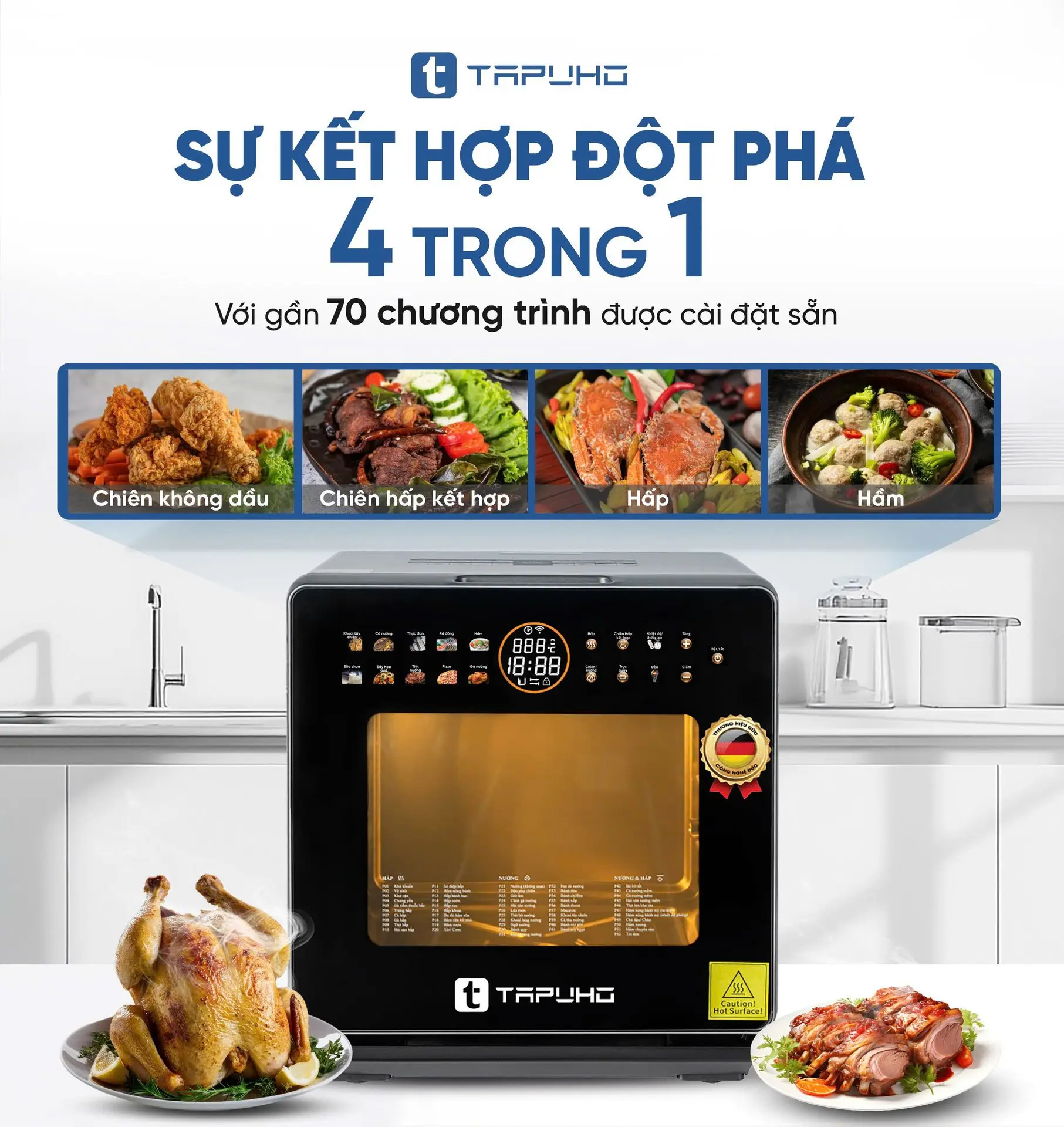 là sản phẩm nồi chiên hơi nước phiên bản giới hạn đời mới nhất năm 2024 của TAPUHO - thương hiệu gia dụng cao cấp đến từ Đức. Đây là dòng sản phẩm cao cấp được ra đời tiếp theo sau sự thành công vang dội từ người anh cùng dòng là TAPUHO TSF16 - sản phẩm mang tính đột phá, bùng nổ công nghệ với sự kết hợp giữa nồi chiên không dầu (công nghệ rapid air) và nồi hấp (công nghệ hơi nước siêu nhiệt Steam Extra) mang đến sự tiện lợi cho khách hàng, ngoài ra nó còn là sự kết hợp 4 tính năng trong 1, đó là tính năng Hấp - Chiên không dầu - Chiên hấp kết hợp - Hầm và đặc biệt có những chức năng chỉ có trên TAPUHO TSF16 COLOR PLUS mà chưa từng có trên bất kỳ sản phẩm cùng loại nào trên thị trường.